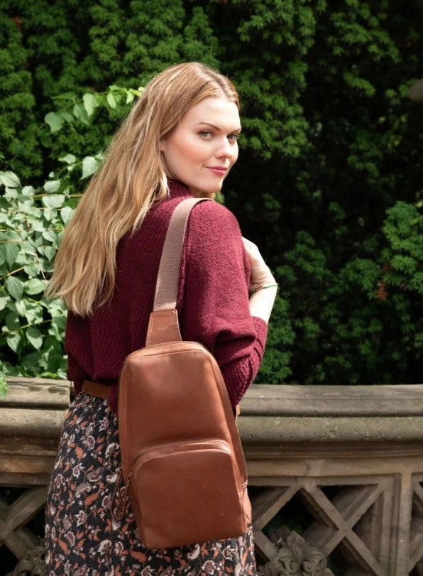 The minimalist silhouette makes the Rosa Sling a perfect on-the-go bag for whatever your day holds. Thoughtfully designed to accommodate any lifestyle, this leather crossbody sling bag is compact, yet roomy. Featuring extended pull loops, adjustable backpack straps with a slider and clip buckle for ultimate function and versatility. The front storage pocket includes an interior card slot for easy access, as well as an interior in the main compartment for additional organization.