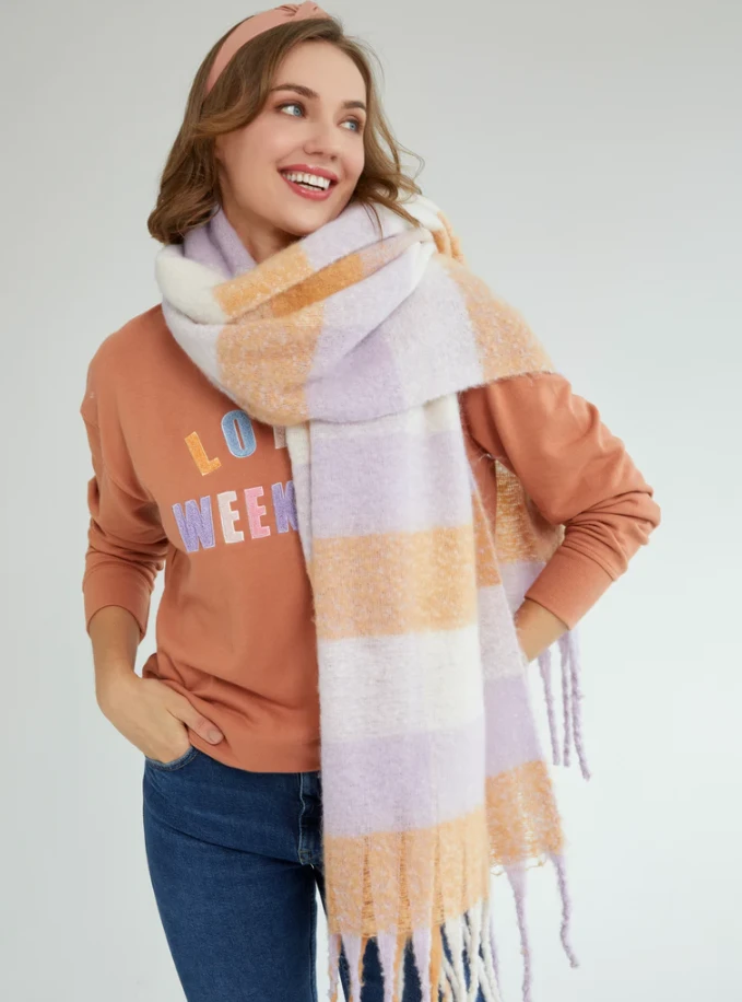Staying warm and cozy never looked so cute! Grab this lilac plaid scarf to keep you warm and photo ready this winter season!