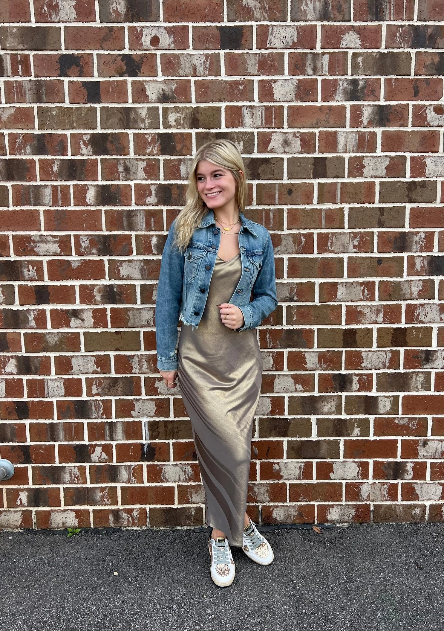 A luxe, mid-length slip dress from Current Air. This 90’s minimalist look can be perfectly layered or worn on its own.