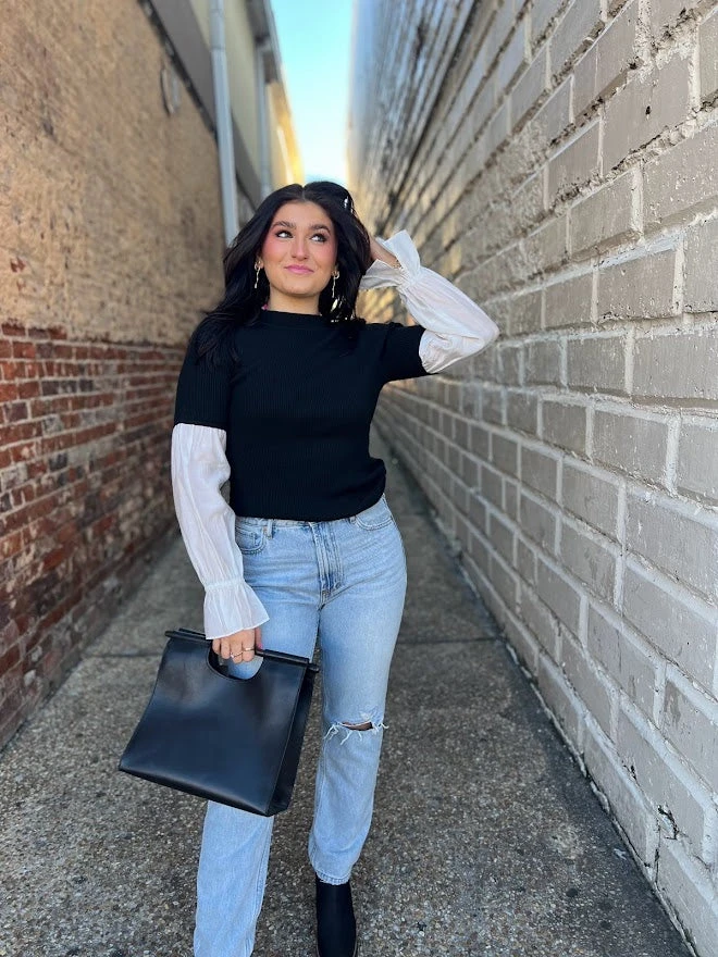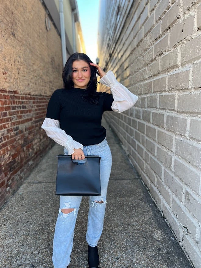 This knit mixed top is the perfect unique statement piece to add to your closet!Â