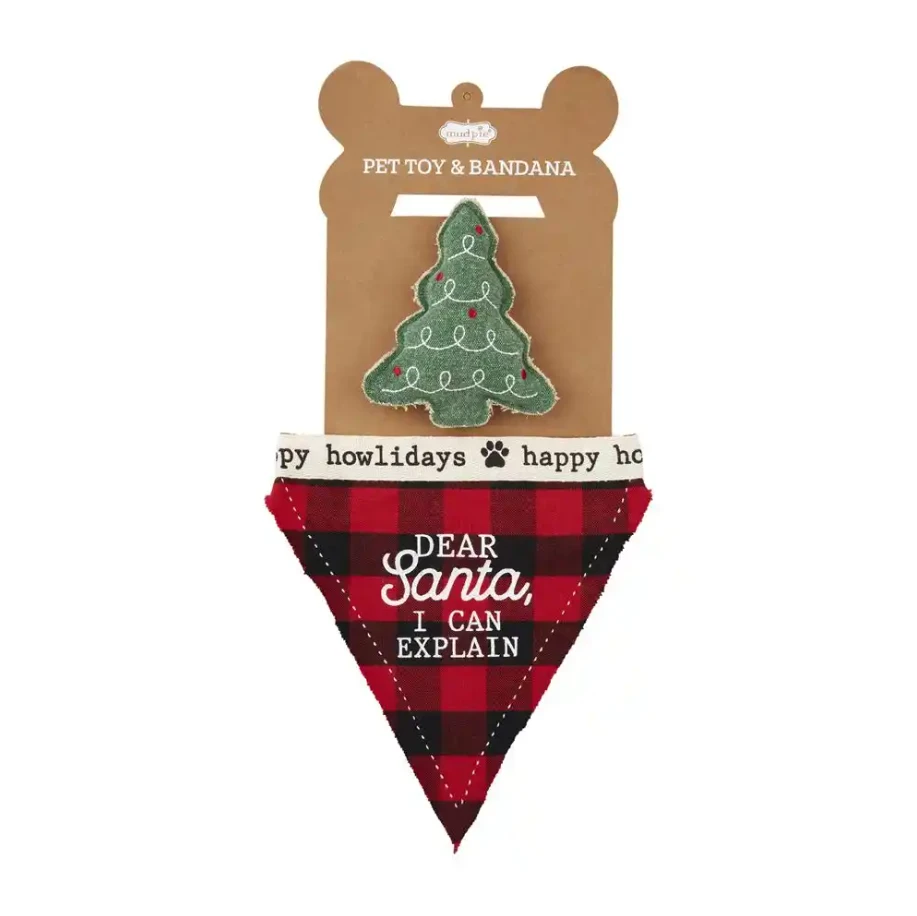 When your furry friend needs a cute accessory for those holiday pictures and you need to keep them focused while you take them, this bandanna and squeaker toy set is sure to do the trick!