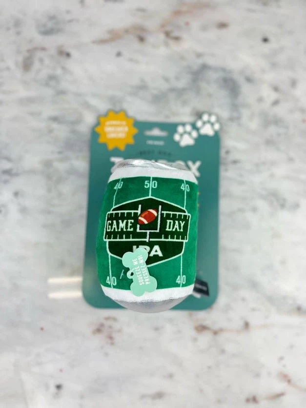 Dog Toy “Game Day IPA” is perfect for playtime, anytime. Made with a super loud squeaker and crazy crinkle paper details, this toy was designed with interactive play in mind. Whether you squeak, crinkle or roll it, this beer will be your pups number one draft pick.