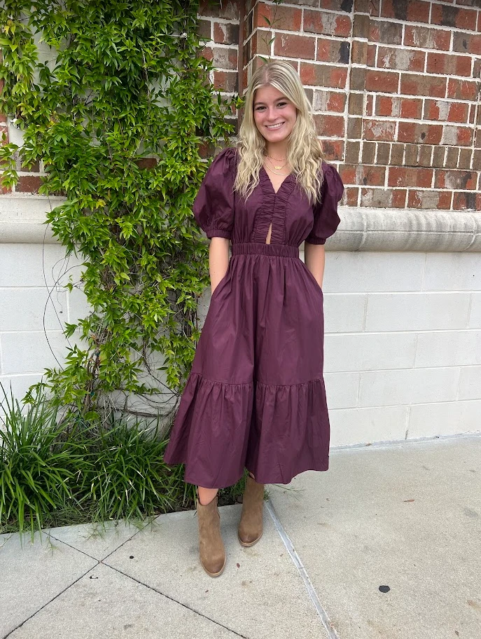 When you need a simple, easy, and stylish outfit, this dress has you covered! Featuring simple cutout detils, puff sleeves, and an elastic waistband, this dress has all the perfect details that make a cute outfit. Whether you want to dress it up with heels or a botie, or go casual with a cute sneaker, you’re sure to feel beautiful in the midi dress!