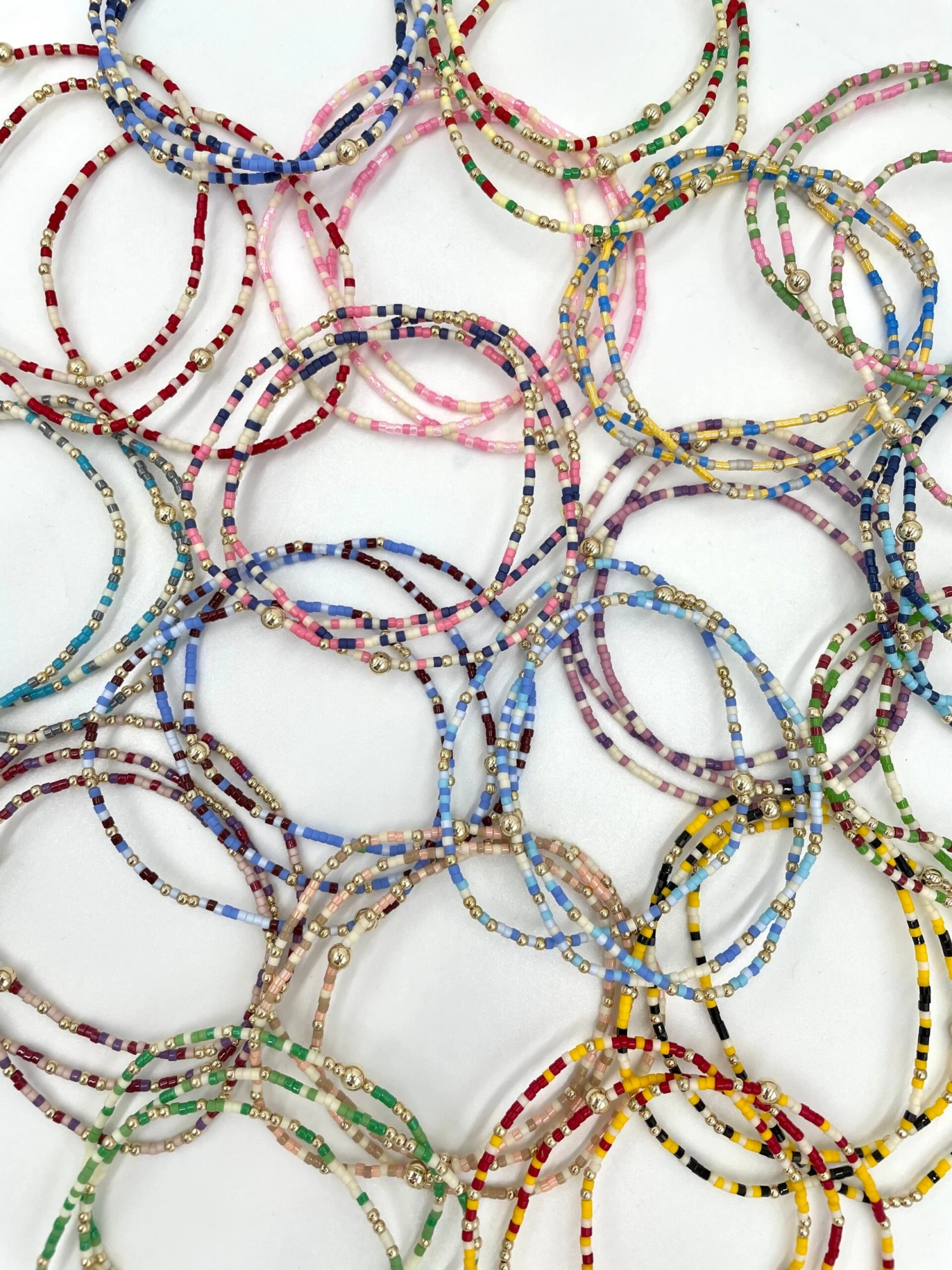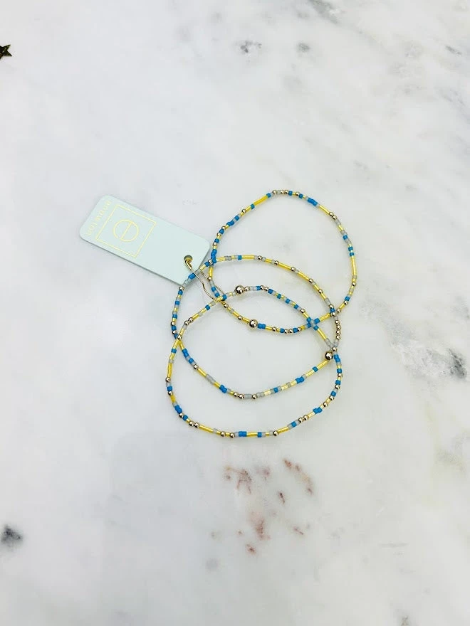- Beaded on high performance elastic for a slight stretch to easily roll on and off your wrist