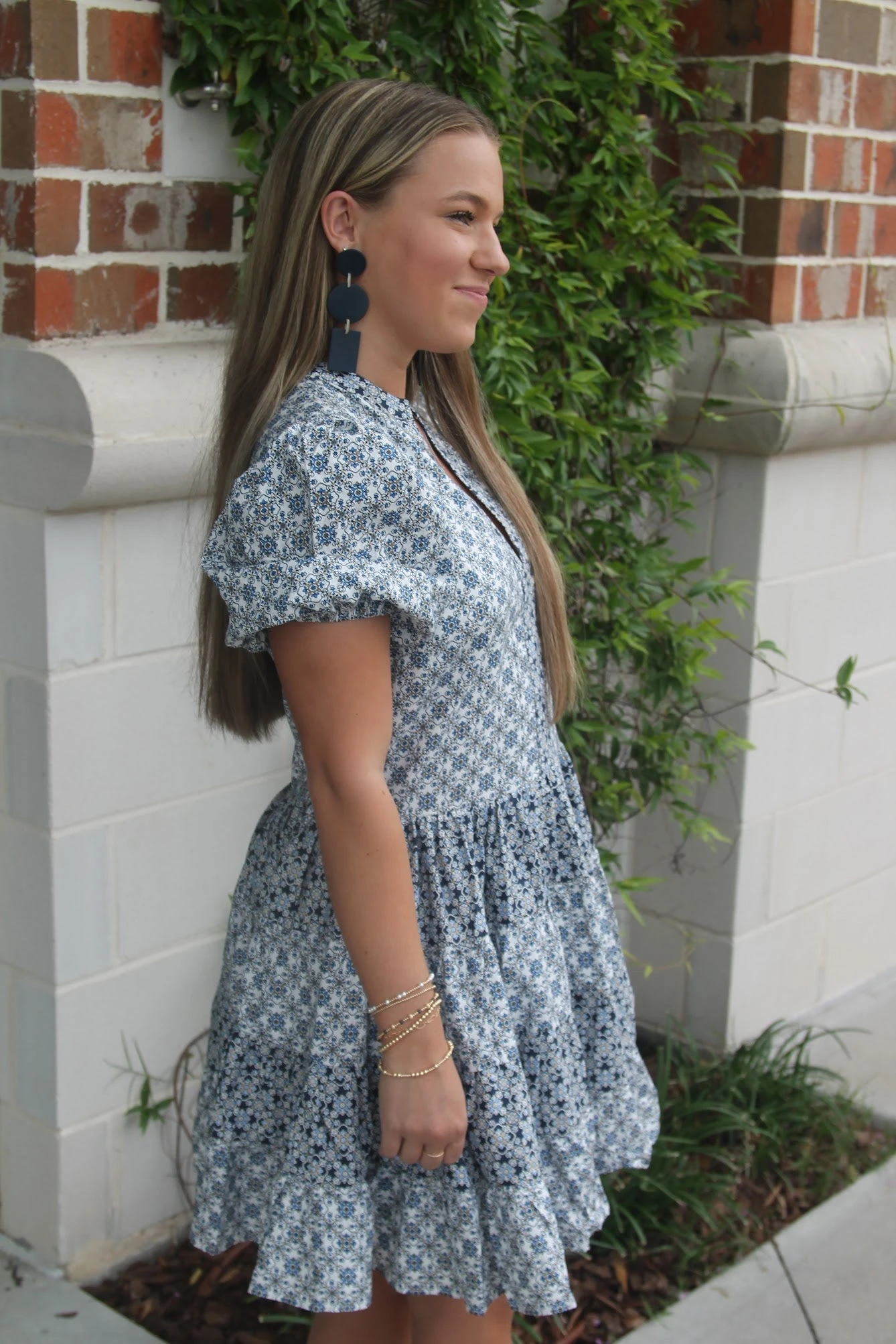 A drop waist silhouette to die for! This mini dress from English Factory is both flattering and fashion-forward. With the fun geometric patterns and short sleeves, you can wear this piece comfortably from Spring to Fall!Â