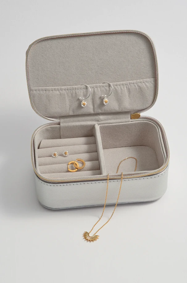 Store your favorite jewelry pieces in this beautifully simple Mini Jewelry Box. Featuring a variety of compartments for earrings, bracelets and necklaces, this jewelry box is ideal for use at home or travelling.