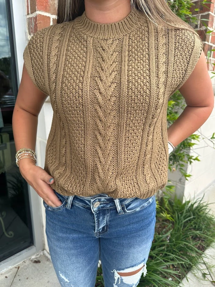 This cable knit sweater is the perfect piece to carry you from summer to fall! Wear it with your favorite pair of jeans and some sneaker for a cute casual look!