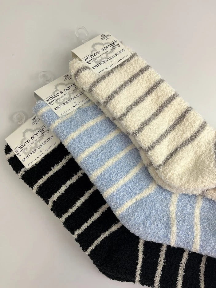 The Fuzzy Crew is the plushest socks you will ever buy! This pair of socks is made to lounge in, plus they come in the most fun colors to spice up any outfit. They come with one pair and are made to fit most. Each one is made up of polyester, nylon, and LYCRA spandex.