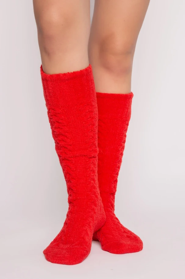 These fuzzy socks will keep your feet warm and cozy all season long! Featuring subtle gripping dots on the bottom.