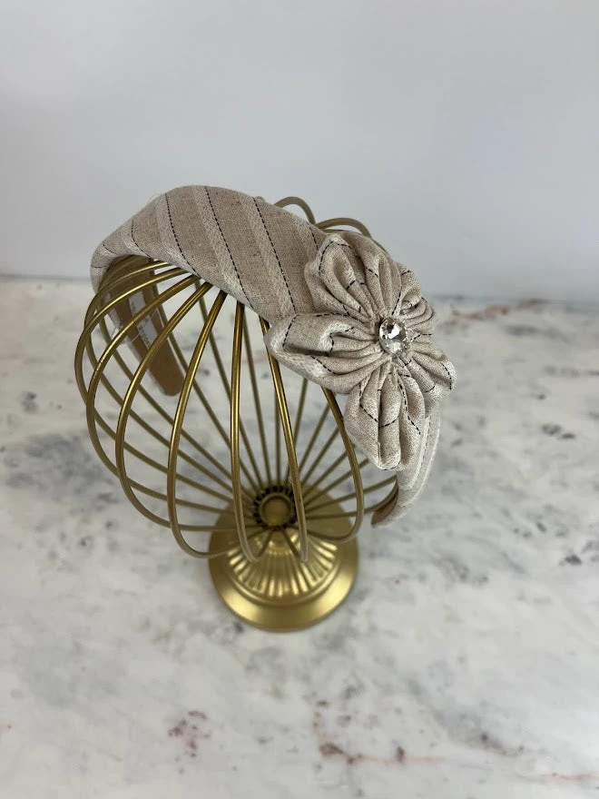 This cute little flower headband is calling your name. With the neutral tones and the sparkly stone, this headband can go with any outfit. The flower is also perfect for the spring season that is just in your future.
