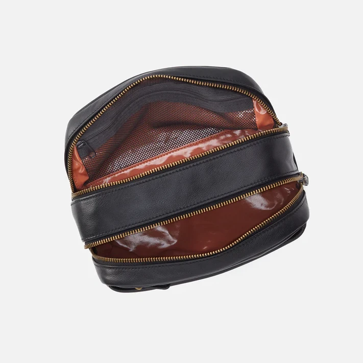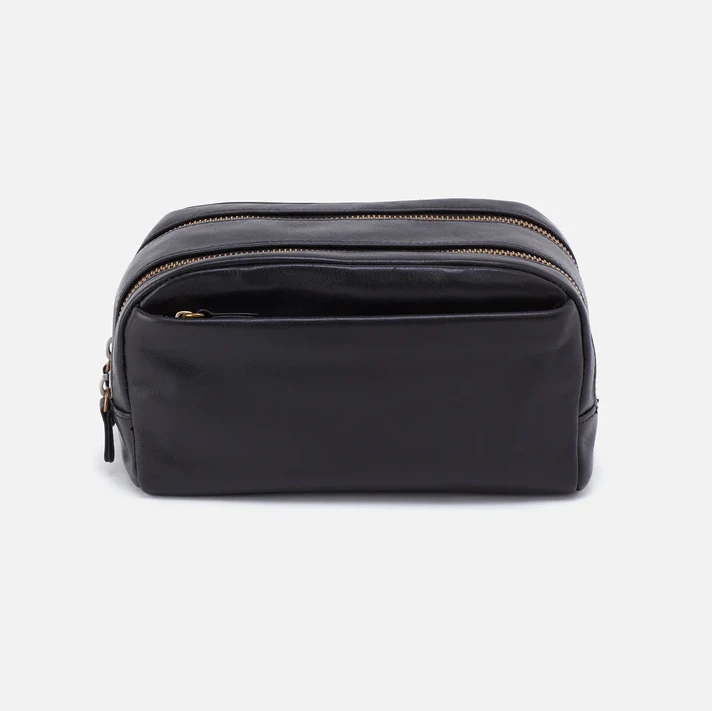 Men’s Travel Kit has two zipper compartments and a lined interior perfect for keeping your toiletries organized.