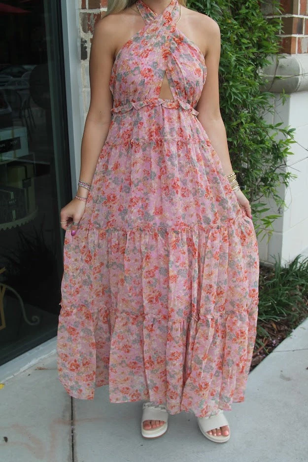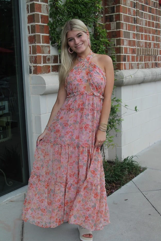 This pink floral maxi dress by ASTR will make you the best dressed guest for any wedding or upscale ocassion!