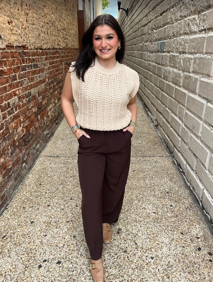Everyone needs a few neutral sweater vest options in their closet! The color and style of this vest practically screams fall. Whether you want to dress it up or down, you’ll always be able to put togther the perfect outfit in this sweater!