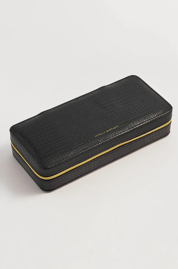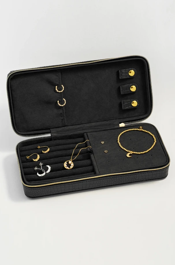 Store your favorite jewelry pieces in this beautifully simple long jewelry box! Featuring a variety of compartments for earrings, bracelets and necklaces, this jewelry box is ideal for use at home or travelling. Â