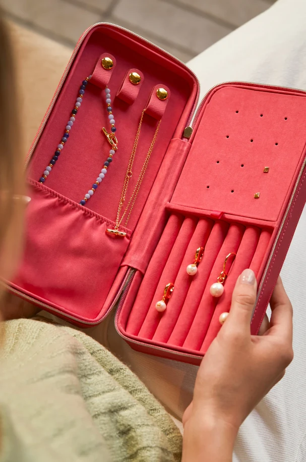 Store your favorite jewelry pieces in this beautifully simple long jewelry box! Featuring a variety of compartments for earrings, bracelets and necklaces, this jewelry box is ideal for use at home or travelling.