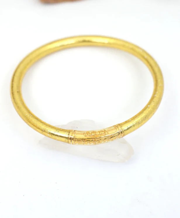 - Each bangle is sealed with a metal mantra tube; one side is for luck, the other for love.