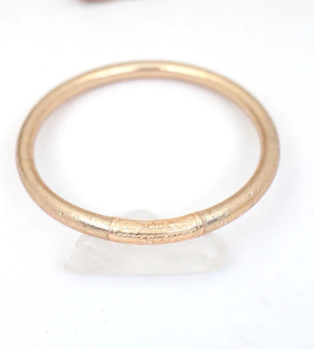 Radiant and glowing, these bracelets are temple bracelets from Thailand. They are filled with the gold flake that is used on the Buddhas outside temples. Just like the Buddhas, these might change color over time with wear.