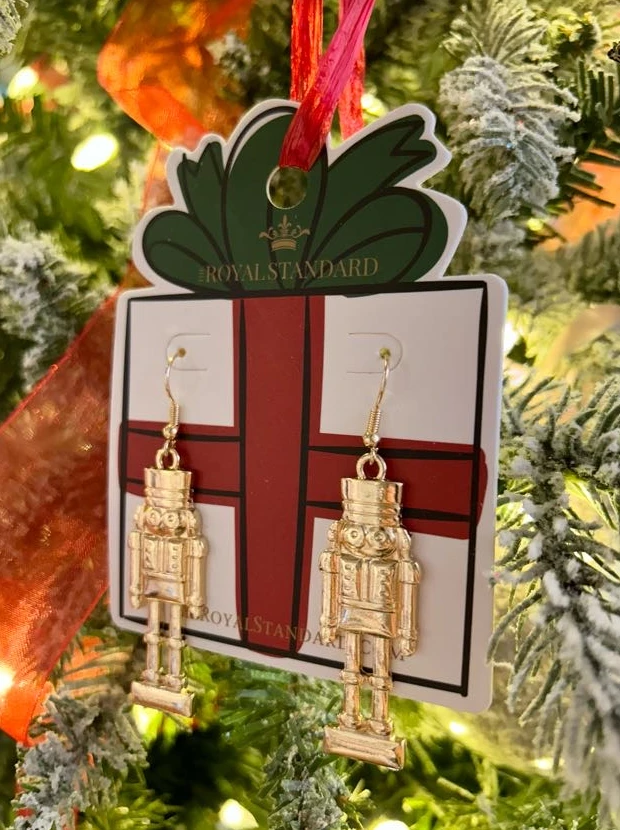 Deck the halls in style this holiday season with these adorable gold nutcracker earrings!Â