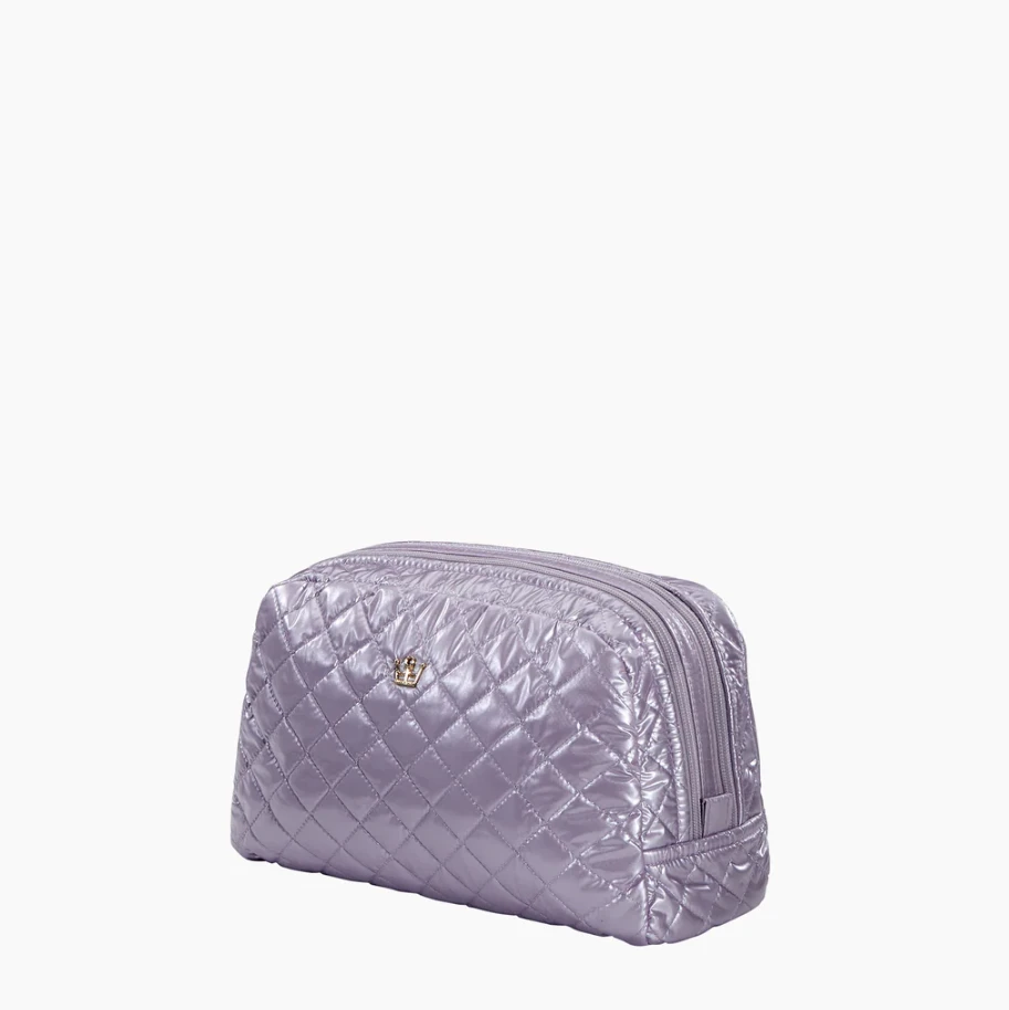 The KST Cosmetic Case XL has the most room for all your makeup and traveling essentials! Two separate zippered compartments can keep your liquid items separate from your other items. Plus, it has an easy to clean, wipeable interior on one side which means you will never be a hot mess again!