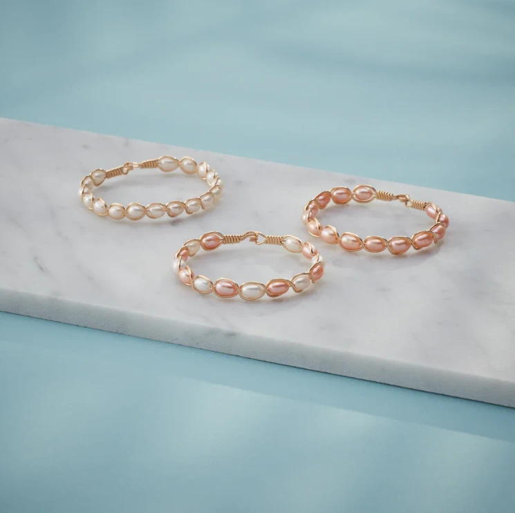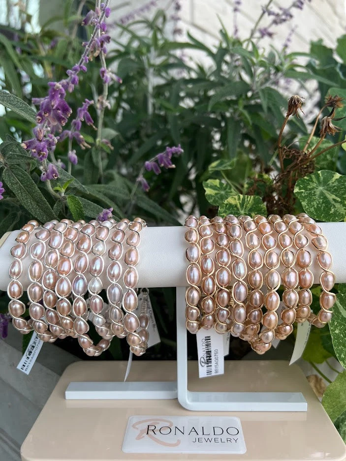 The beauty of white and pink fresh water pearls and Sterling Silver artist wire combined gives this Ronaldo Designer Jewelry bracelet its Natural Charm.