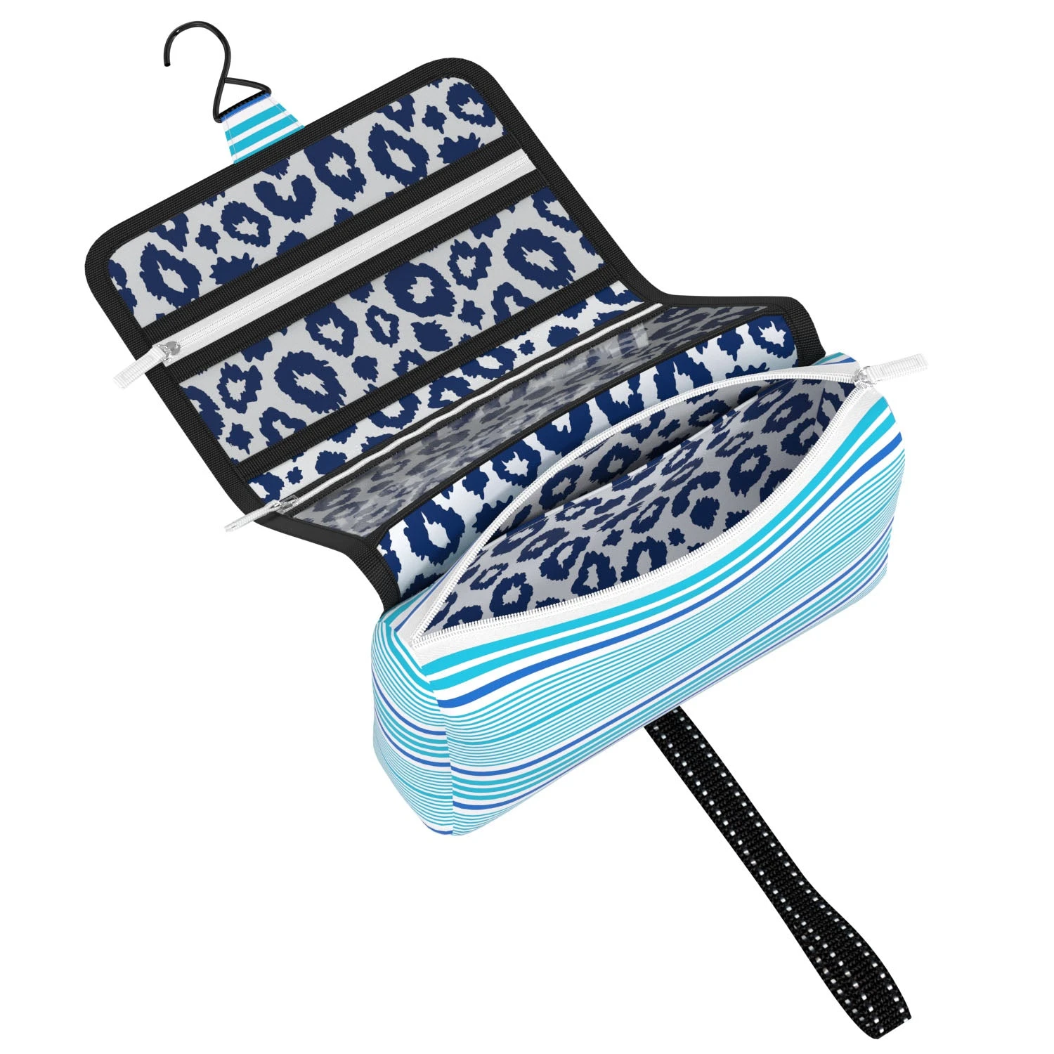 Multifunctional is best when it comes to toiletry bags. Whether you’re on the go, or using products at home, a hanging option is essential to convenient storage. Simply fold the bag (like a burrito) when the hanger is not in use.