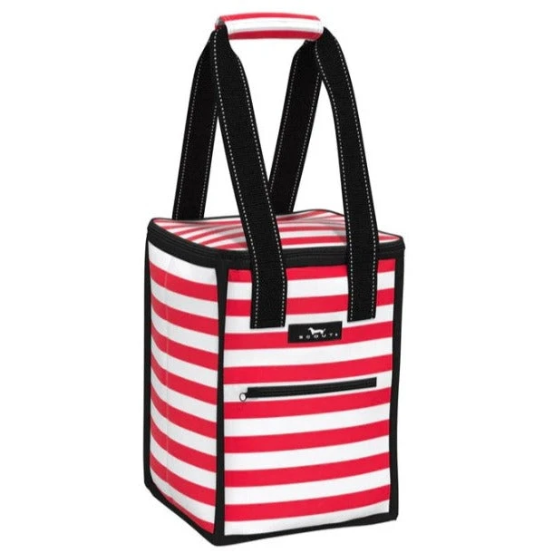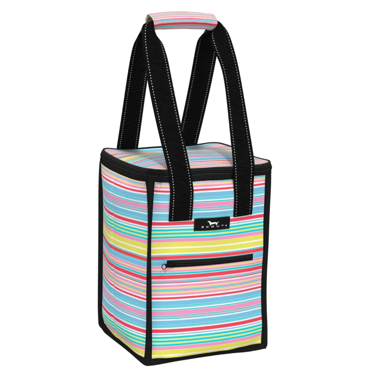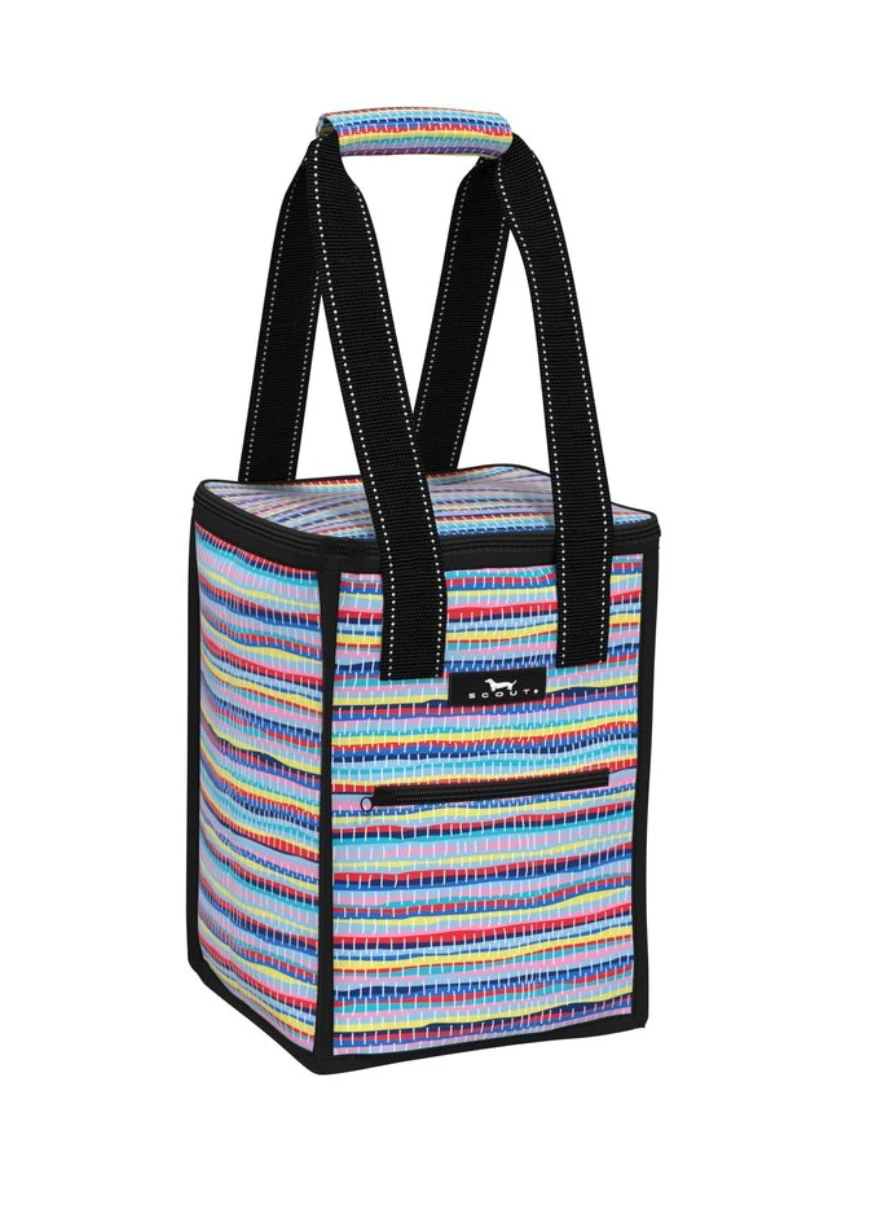 Ideal for family outings, this cooler fits a six-pack or four wine bottles. It’s just the right size to stack multiple food containers. There are two outside pockets to hold napkins and utensils, or candy bars (no judgment here!).