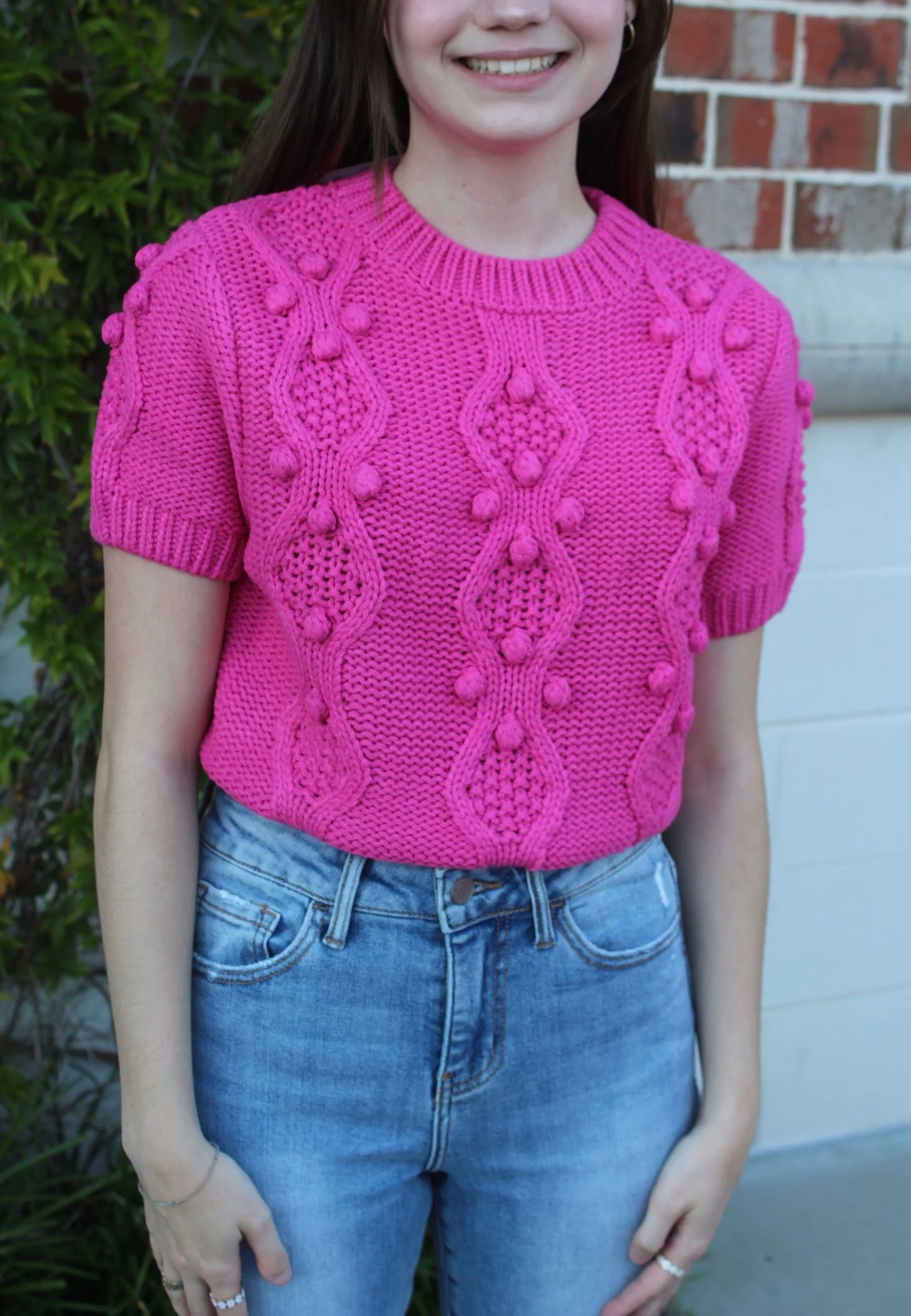 The perfect transition sweater with a pop of BOLD pink!