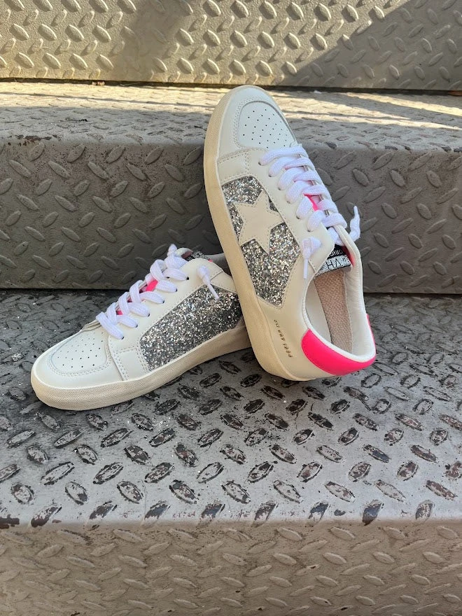 The Positivity sneaker really will add positive vibes to any outfit. These shoes are a POP of FUN!! They have both a bright color – hot pink and tons of sparkle. They can brighten up any drab outfit, but they can also go with any colorful outfit you may be wearing.